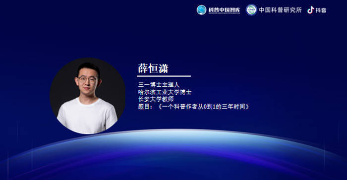 三一博士主理人,哈尔滨工业大学博士,长安大学教师薛恒潇结合自身经历,为大家分享了一个科普作者从0到1的三年时间。从单打独斗到获得平台支持,薛恒潇在创作中逐渐找到自己的方向,并尝试将科普做成产业,让科普惠及每个人,科普除了严谨的科学性以外,更重要的是普及,要做所有人都能听得懂的科普创作。