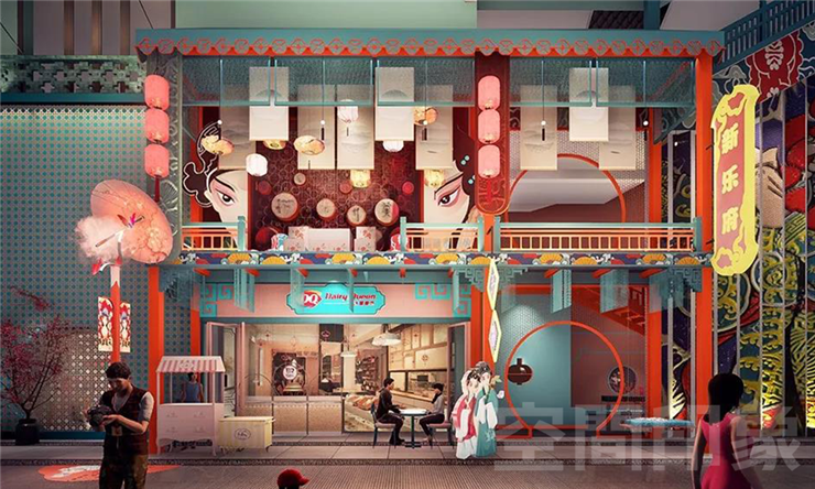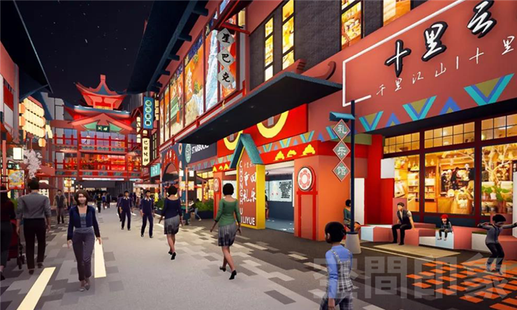 朱红色调与诗画江南里的青绿色彩形成鲜明对比,街景中间搭配诗书、墨画、戏剧、弄堂、市井风情,将古人的诗酒人生,演绎得异彩纷呈。