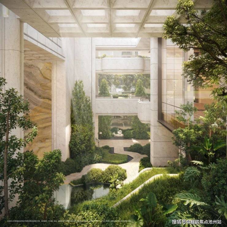通过无界、立体、亲水、活力四大设计理念,将运河的自然艺境全方位注入 社区,打造河景联动、水景渗透、垂直森林、度假感场景的立体鲜活社区。