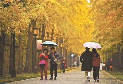 “银杏大道”黄叶飘 打卡赏秋圆明园