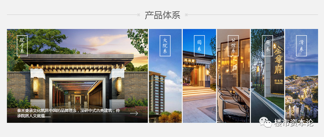 在院子系之后,泰禾也在不断进行产品的创新,细分出升级版的大院系和微缩版的小院系两种产品类型。目前,泰禾已经形成了院子系、大院系、府系和园系等多条差异化的产品线,成为新中式豪宅的引领者。