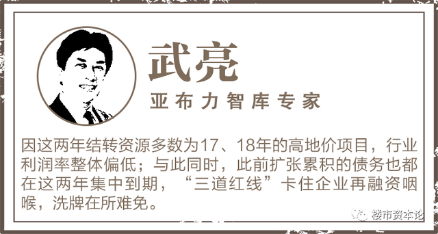 对此,亚布力智库研究员武亮表示,因这两年结转资源多数为17、18年的高地价项目,行业利润率整体偏低;与此同时,此前扩张累积的债务也都在这两年集中到期,“三道红线”卡住企业再融资咽喉,洗牌在所难免。