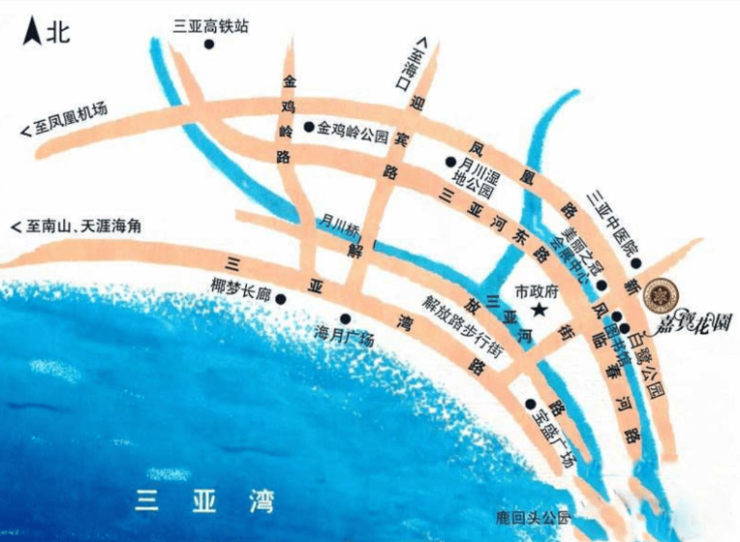 首地广场过马路3分钟到,蓝海购物广场700米(旁边就是三亚市政府),步行街、明珠广场1.5公里到