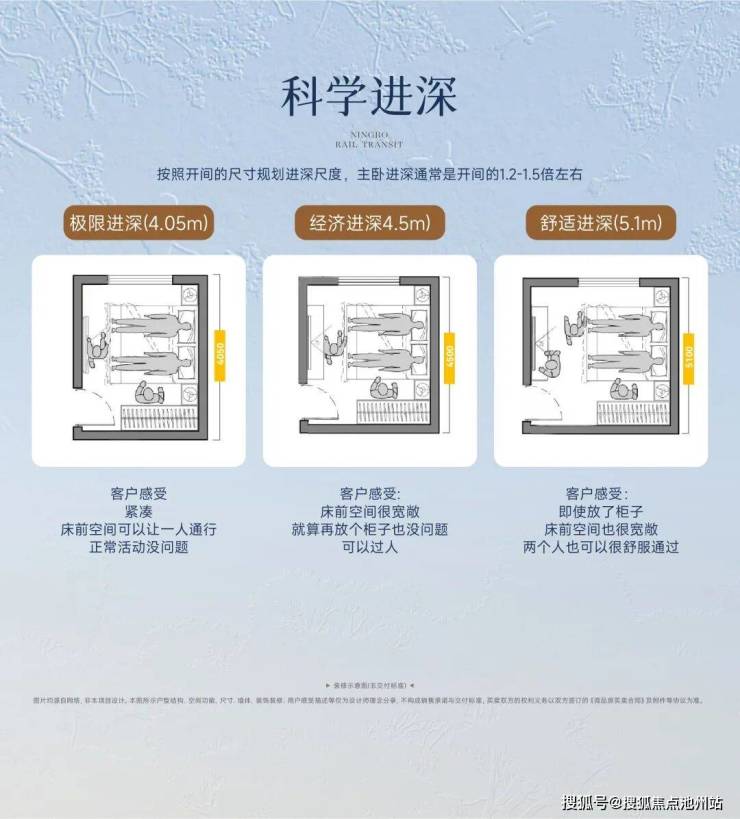 当然,仅有面宽远远不够。一个真正好用的房间,如同一个完整的生态系统,在舒适的“面宽”尺度之上,主卧室需要叠加科学“进深”,来进一步承载高品质生活的厚度。