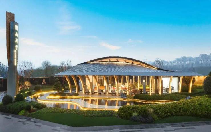 山河会客厅以沉浸式实景体验为核心,匠筑现代东方美学场域。200㎡美学建筑与2800㎡开阔草坪、静谧镜面水景相映成趣,以简约木纹构架立序城市封面。室内借景入室,「归巢」吊灯呼应山河意趣,让宋式风雅底蕴与现代雅奢质感完美交融。
