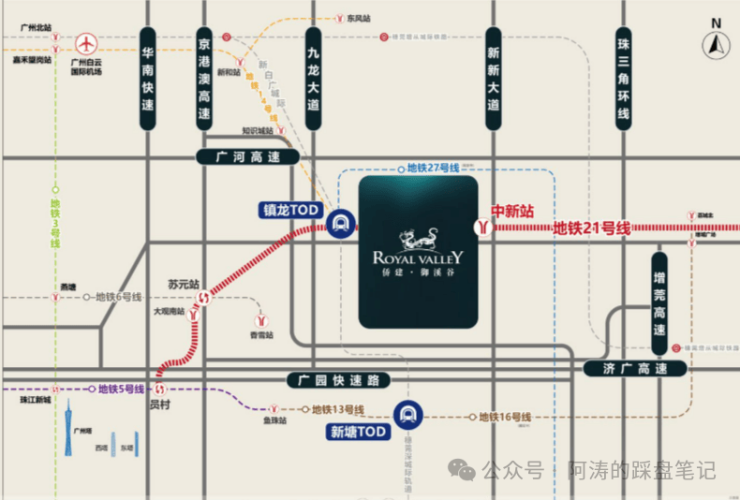 ●广州地铁:真地铁上盖,距离中新站200米,镇龙站(快线站)2000米