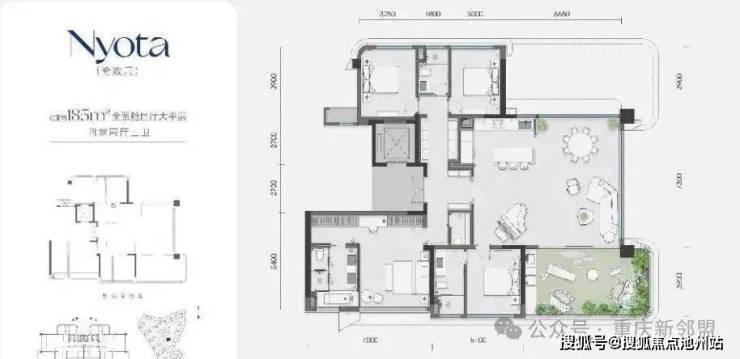 户型:建面125㎡+露台22㎡ 四房二厅两卫