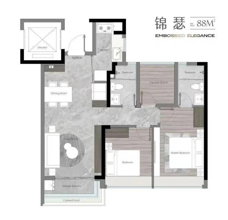 建面约88㎡南向臻品户型,奢厅入户 尊崇归家 南北对流 三开间朝南