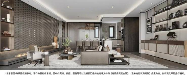 住宅配置德国唯宝、西门子及美国摩恩等知名品牌,同时装配VRV中央空调系统,升级金质岩板美学收纳体系,给业主以精致轻奢生活体验