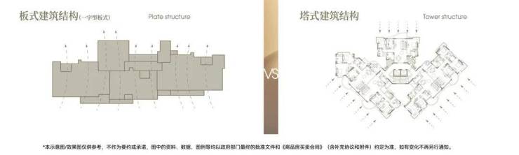 ×塔楼:混合朝向,并非户户朝南,户型间存在遮挡,容易产生对视,室内空气流线差,换气效果相对较差。