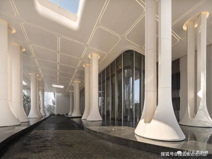 当天际业主成为身份的共同标识,落客庭院便是与武昌都芯划界而治的缓冲带。主入口门厅正对约20米跨幅的艺术景墙,落水细密柔和,引领一场从喧嚣到静谧的从容过渡。