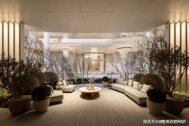 2号楼走廊端头,一处270°景观室外会所豁然展开。高品质软装设计与开阔景观面完美融合,业主户外party等多元场景随时开启。