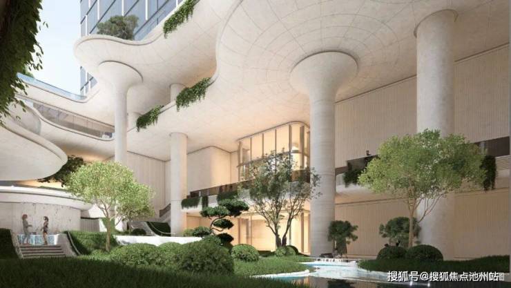 信步三进下沉庭院,迎面而来的是一片开阔的中庭空间。生境山谷延续云梦翠谷灵感,以立体生态景观雕琢一方森意天地,四层垂直绿意层叠交织,以自然的丰富层次为场域注入呼吸感。