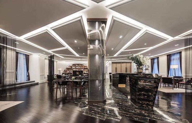 带着对现代艺术的热情,Wilson Associates对华发广钢销售中心项目采用了前所未有的设计手法。位于大堂和吧台区的家具有着大胆的风格,展现出的黑白撞色之间的巧妙平衡,可以与艺术领域中抽象印象主义所呈现的令人着迷的平衡相媲美,好比一幅以建筑为背景,将家具视作雕塑的极佳艺术品。