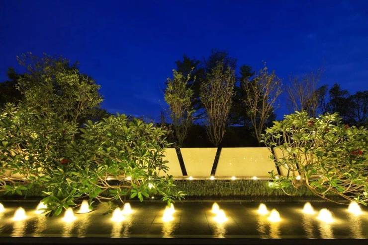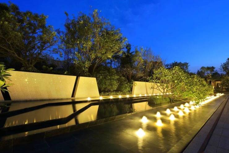 -对称水景结合对景景墙强化空间的轴线感,更显端正