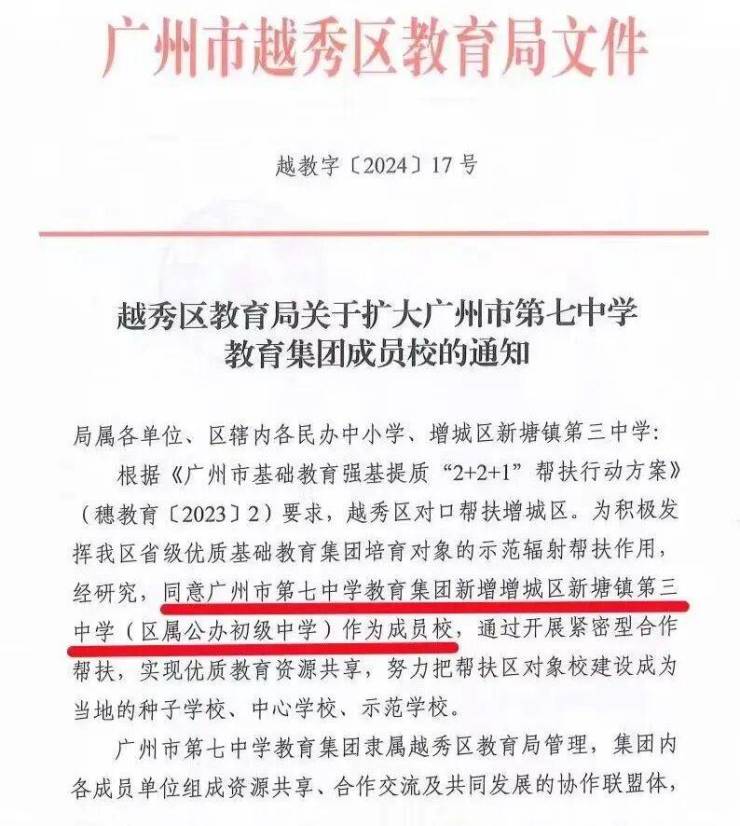 而且目前对口的新塘三中加入增城广附教育集团,新塘三中纳入增城广附教育集团后,相信增城广附中学的这些优质教育资源也将被新塘三中所共享。