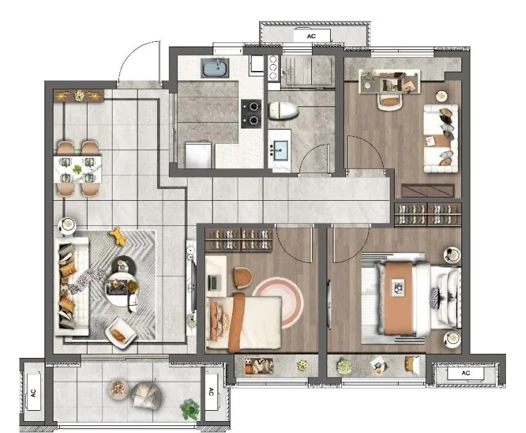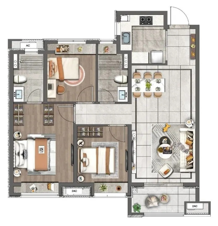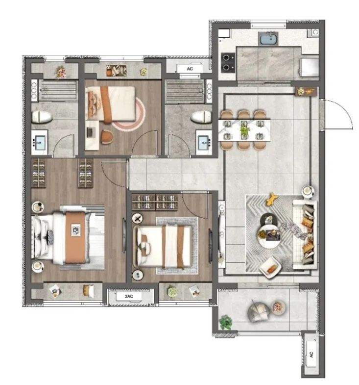 同时,作为改善产品,无论2房、3房、4房,这个段位的产品面积都相对偏大。比如90㎡只能做2房,120㎡做成大3房之类的~ 追求的是相对宽敞的生活空间。