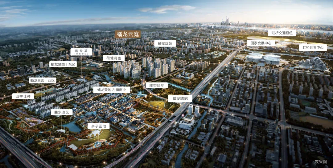 项目主打约95-125㎡2-4房,精装交付。瑞虹出品50余万方大项目,采用了涵盖景区公园、商业、住宅新天地模式,距离17号线蟠龙路站约500米。