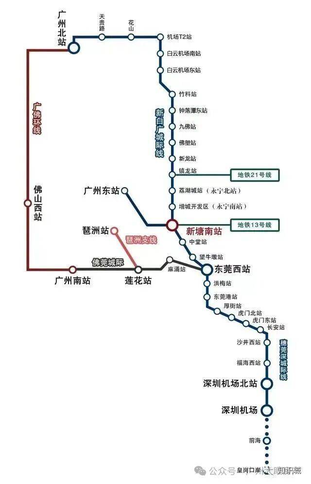 新白广城轨(在建中)1站白云机场,南向通达东莞和深圳。