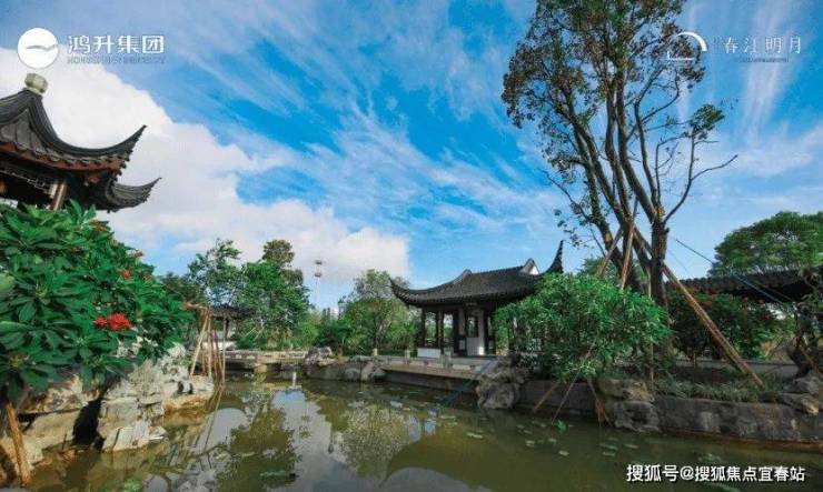 在园林设计上,项目由鸿升新置业集团盛邀当代苏州园林代表人物黄勤倾力设计打造,以苏式古典园林网师园为蓝本,取江南山水精华,糅合鹤山文化元素,承袭中华千年造园工艺,复原江南古典园林,营造出水乡里的一派悠然桃源景象。