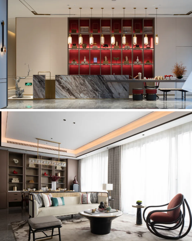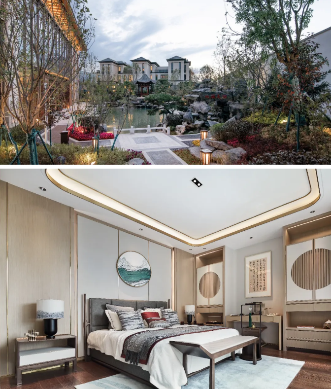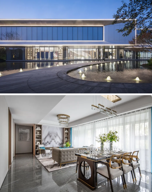 百转千回的水磨腔唱不尽古往今来的典雅神韵,苏州的传统文化唤醒人们的创造力,独树一帜的吴侬软语浓缩气象万千的文化底蕴。项目在定位典雅的基调上,融入当地戏剧文化,应和了苏派所追求曲折之致。一半庄严,一半飘逸,中和之美是细细斟酌后的黄金点。整个示范区透露着隐秘奢华的气息,微微的东方神韵恰到好处。
