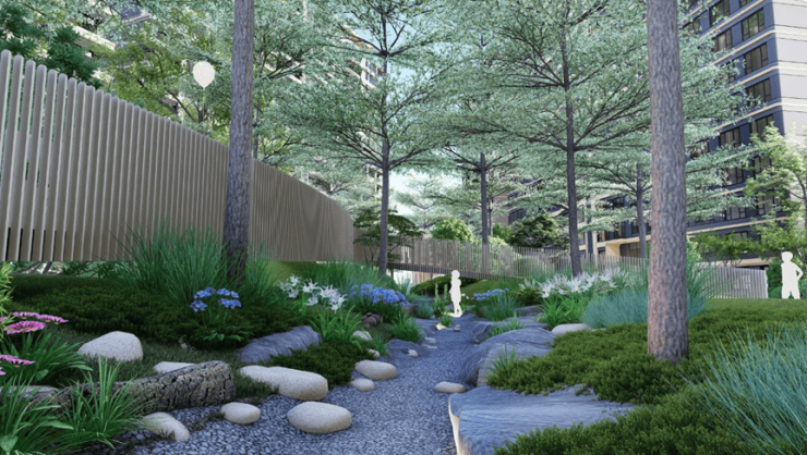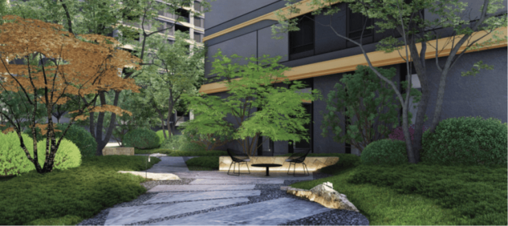 社区绿化以“森居”为设计理念,为业主打造了植被多样、层次丰富、质感突出的林地景观。以花草、灌木、花树、乔木构建高低有致的四重景观层次,融合自然之美体现社区品质。让空间在绿意里延伸,绿意在空间中成长,在门口即可感受自然之美。