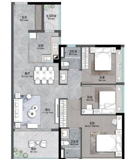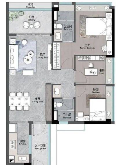 实测户型亮点十足:建面约93㎡三房两厅两卫,整体格局方正,客厅阳台进深充足,卧室及卫生间均配备全景飘窗,有效提升采光与通风效果,即使朝北户型也能保障室内明亮通透。该户型功能分区清晰,主卧配备独立卫浴,保障私密性,双次卧空间充足,可灵活作为儿童房、书房使用,适配刚需家庭居住需求。建面约107㎡四房两厅两卫,实测得房率约102%,空间利用率极高,布局紧凑而不局促,满足成长型家庭的居住需求。