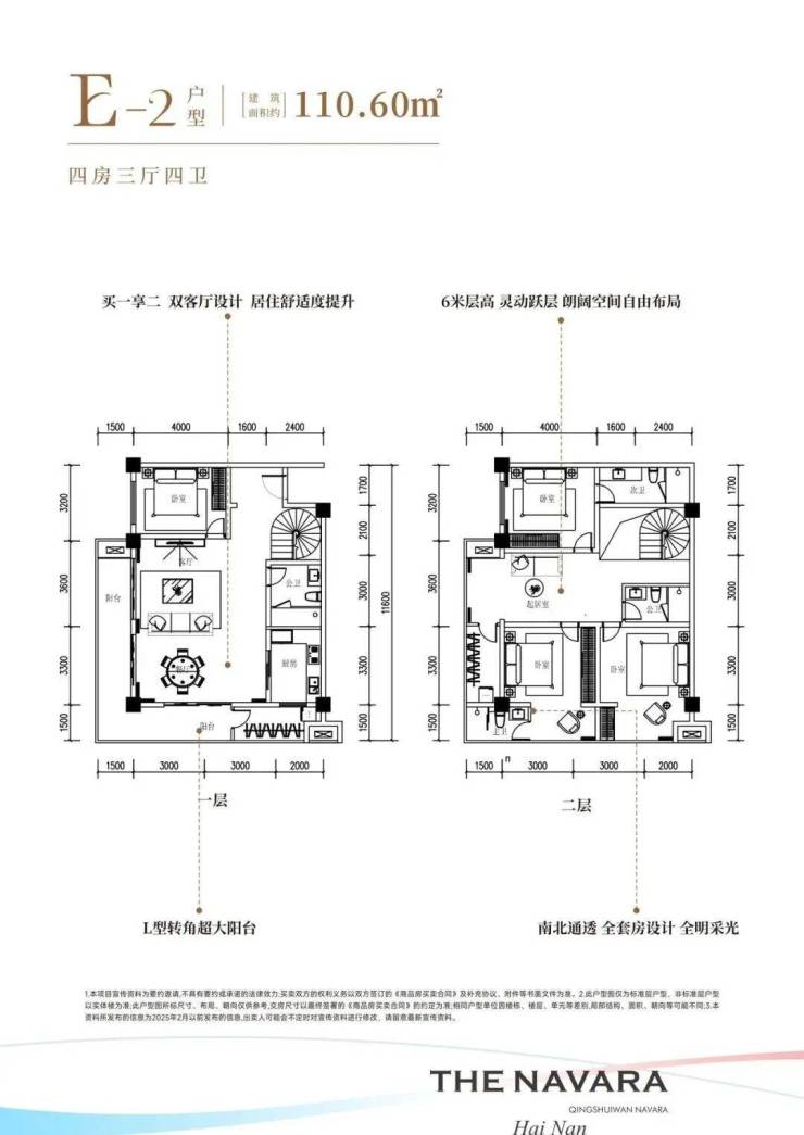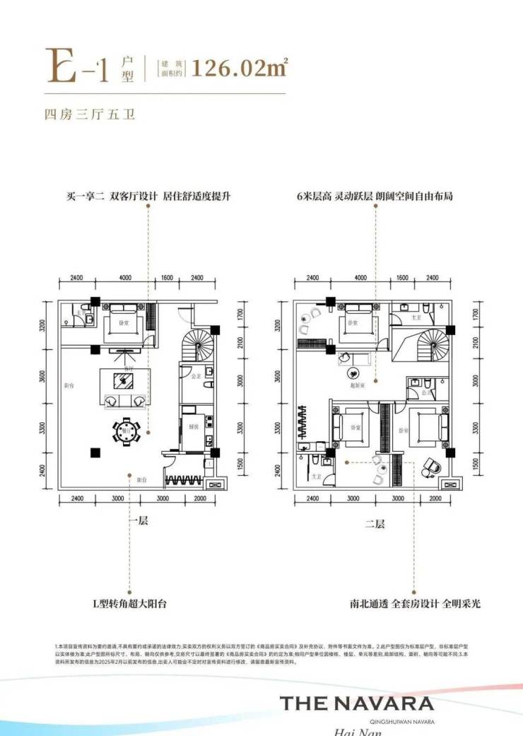 清水湾·纳瓦拉深刻洞察现代居住需求,用心定制层高3.4m、建筑面积约47-125㎡一至三房瞰景平层,层高6m、建筑面积约47-125㎡二至四房优雅复式。