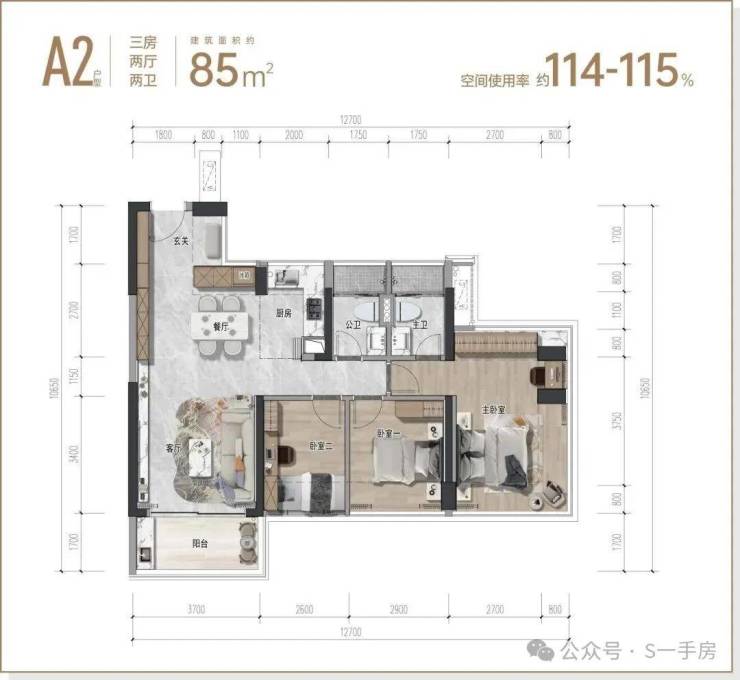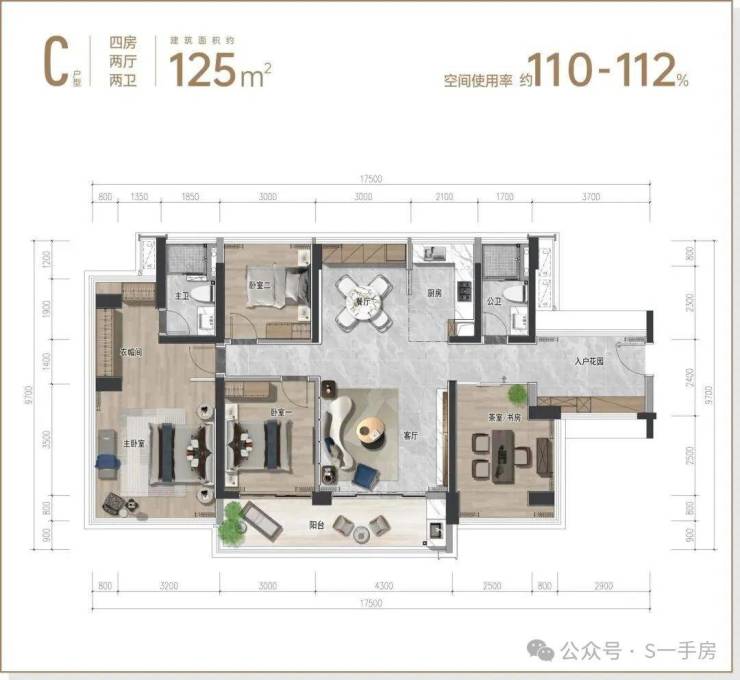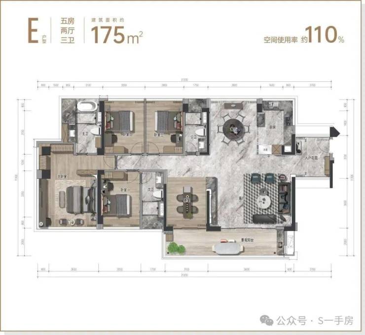 产品面积段:建面约85㎡-175㎡高得房率奢阔三至五房 新规好宅