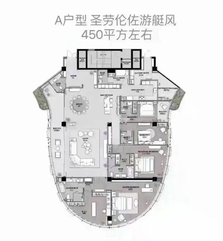 户型面积 约430、450㎡ 精装现房-总价1680万起