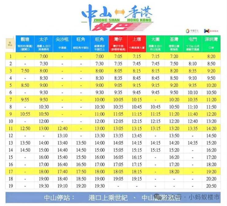 7、中山108前往上乘世纪中港巴士站和京华世纪酒店约7km,约10分钟行程,每天多趟行程前往香港;