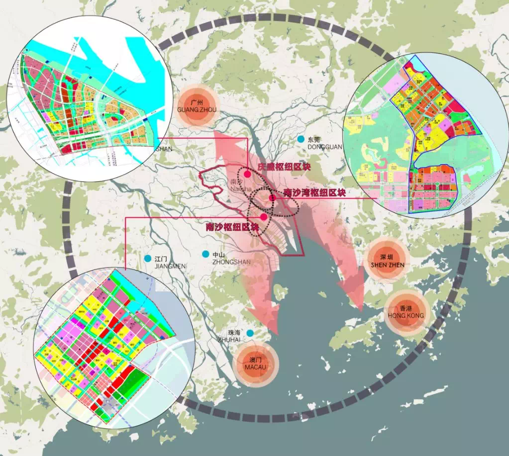 庆盛枢纽、南沙枢纽、南沙湾恰好就是组成粤港深度合作园的区块,规划面积23平方公里,规划建设成为国际科技创新合作新高地、粤港产业转型升级新平台、与港澳相衔接的营商环境新特区、港澳居民优质生活新空间、湾区城市联动发展新枢纽,打造粤港澳全面合作先行区,率先在“科技创新、智慧产业、营商环境、生态宜居、国际合作、青年创业就业”等方面形成示范。