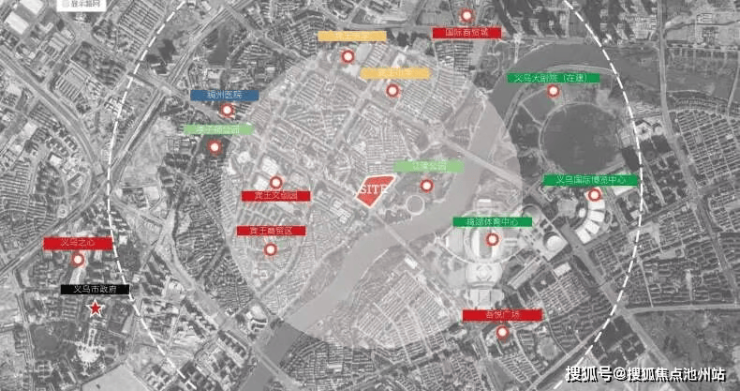 【商业配套】义乌国际商贸城一区及义乌世贸中心(新光汇)直线距离约1.3公里,吾悦广场直线距离约1.2公里,义乌之心直线距离约2公里、朝阳门商业中心、义乌天地直线距离约2.5公里