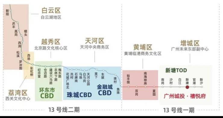地铁13号线(已开通):从新塘出发,3站黄埔,9站天河,45分钟畅达珠江新城,贯穿广州东西六区,联通5大CBD。二期开通后无需换乘直达珠江新城,生活工作两不误。