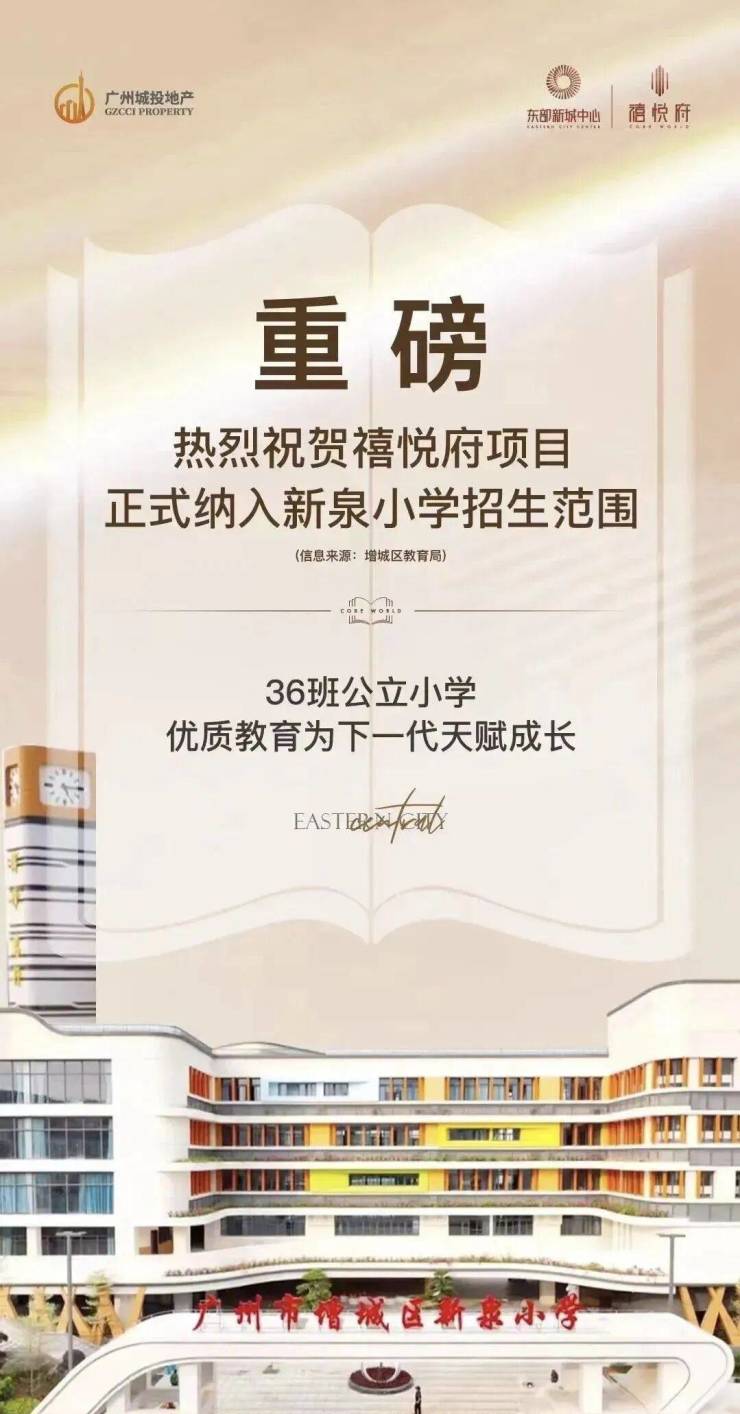 3公里范围内分布加蒙特国际幼儿园、凤凰城中英文学校、永宁街第二小学、东部枢纽配套小学(增城区新泉小学)、瑶田小学、新塘中学、广州大学附属中学等多所优质学校。