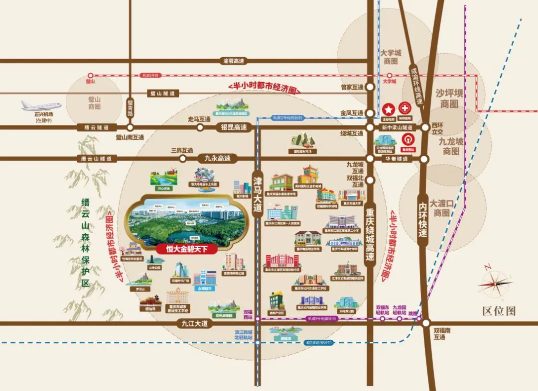 双福新区背靠风景秀丽的缙云山脉,幅射面积66平方公里。