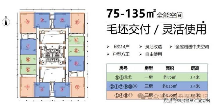 【翔海国际金融中心】:40层、3.4米层高、6梯14户,户型75-115-135㎡