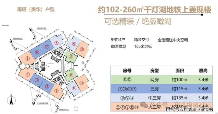 【美华国际金融中心】:50层、3.4米层高、9梯14户,户型102-115-135-158-260㎡