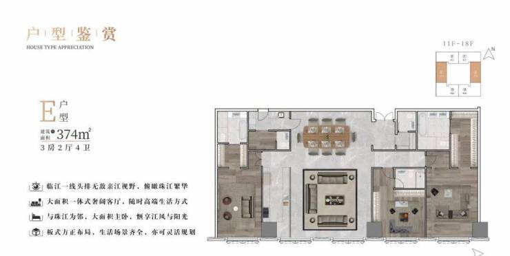 据统计,近6年广州出让的354宗拍卖地块里,享有江景资源的仅有8宗,南向望江更是只有3宗。南向江景资源之所以稀缺,是相对北向户型,拥有更多的阳光权,更通透的视野权。