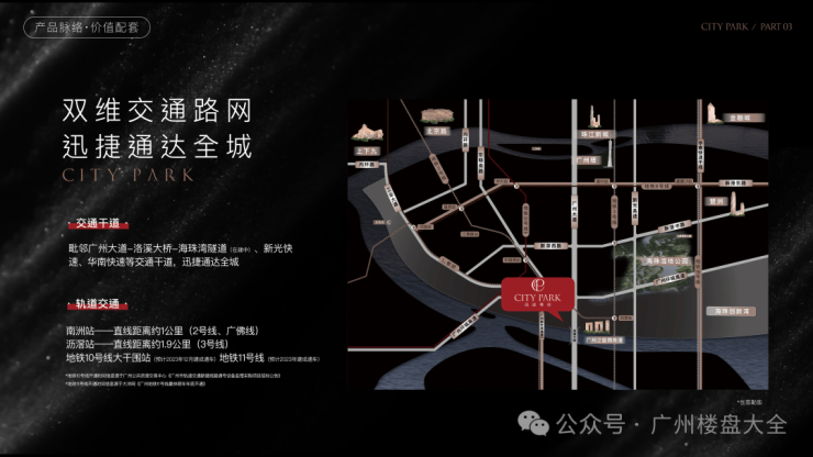 对自驾的业主,这里沿着沥滘路可接驳广州大道、新光快速。无论去琶洲、万博还是珠江新城、金融城,都是20分钟左右车程。