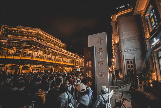 在商业改造上,昔日记忆里的钟楼街是“繁华、老字号、商贾云集”,经文旅融合的钟楼街又以“融合、新业态、大型商圈”的新符号展示在众人面前。在开街首日,客流量突破24万人,在国庆期间,钟楼街总人流量更是超过北京王府井商业步行街,位列华北之首。
