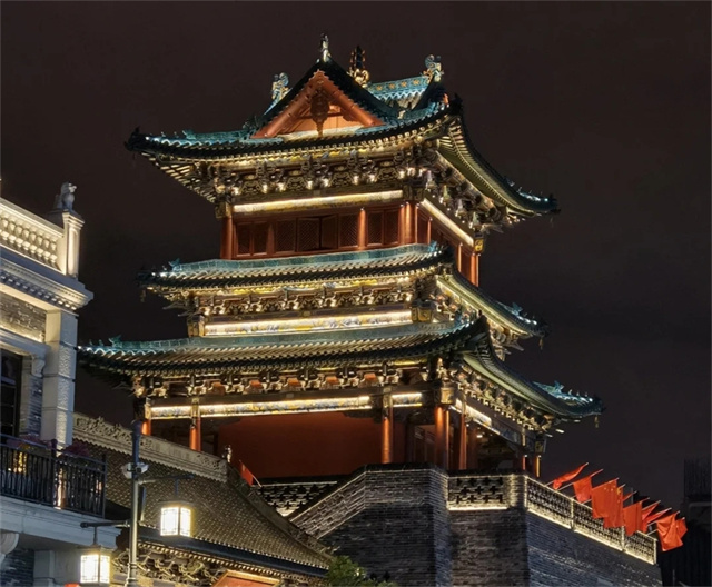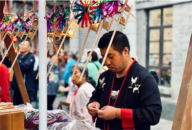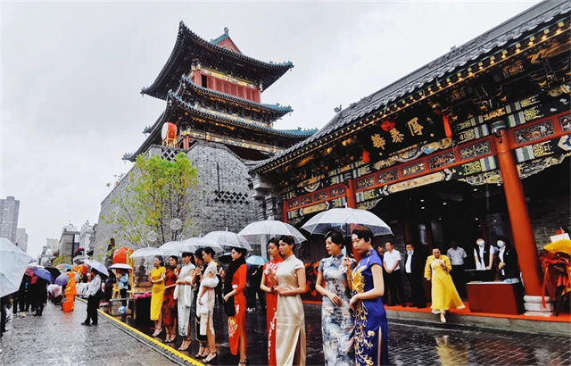在还原明清时期建筑形态的同时,引入新风尚的沉浸式活动场景体验,实现年轻趣玩空间与文化建筑的灵感碰撞。有“钟楼古街主题展”,按察司牌坊广场上设立的唐人绣纺、孝义皮影、非遗玩具、雪梅布艺、常氏糖画、振华剪纸等“非遗市集”,以及钟楼后广场布置的“国潮市集”,让人穿越古今,沉浸其中。