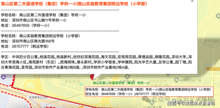 处南二外学府一小和南二外学府中学学区范围内,直线距离约900米还有深圳南山实验教育集团明远学校