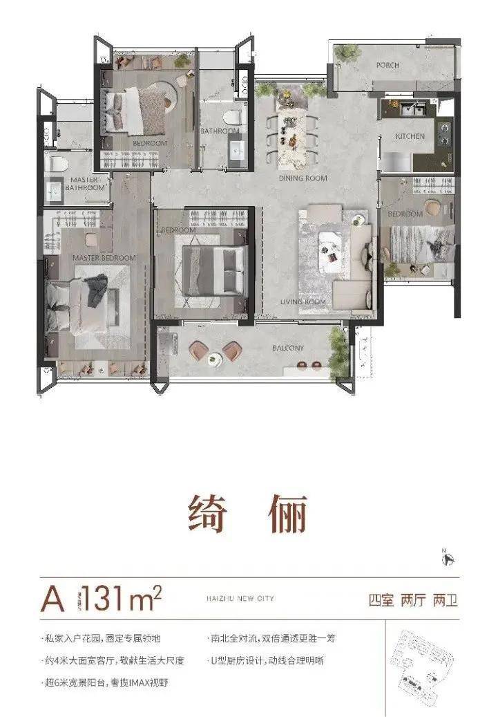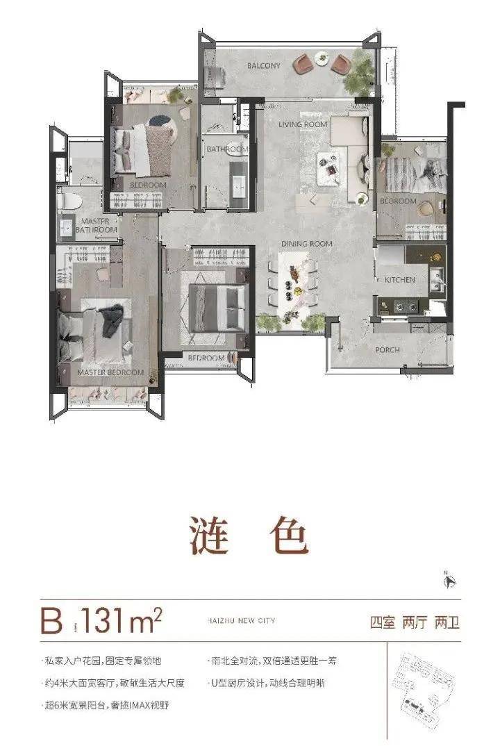珠光·海珠新城推出了一系列高实用率户型,覆盖110㎡-230㎡的改善型住宅,产品设计讲究空间利用率,部分户型更享一线江景+公园景观。
