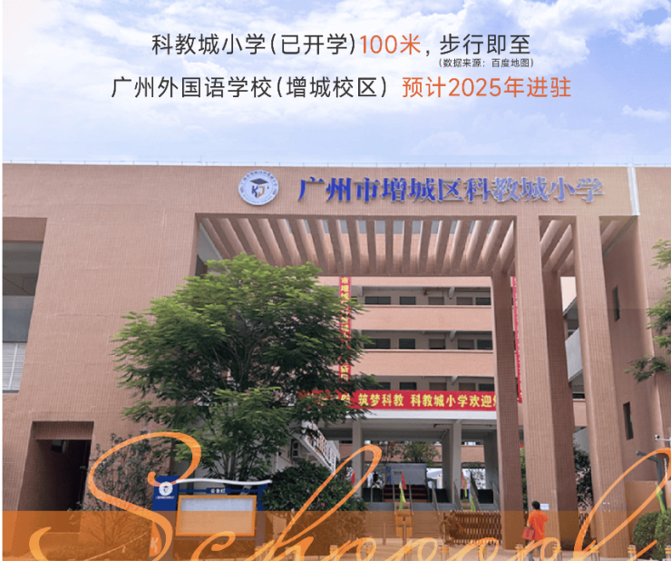 小区自配建24班小学(科教城小学),距离约500米广外(建设中),科教城规划11处教育用地!广州科教城规划12所高等职业院校已全部入驻,将为创新人才培养奠基。