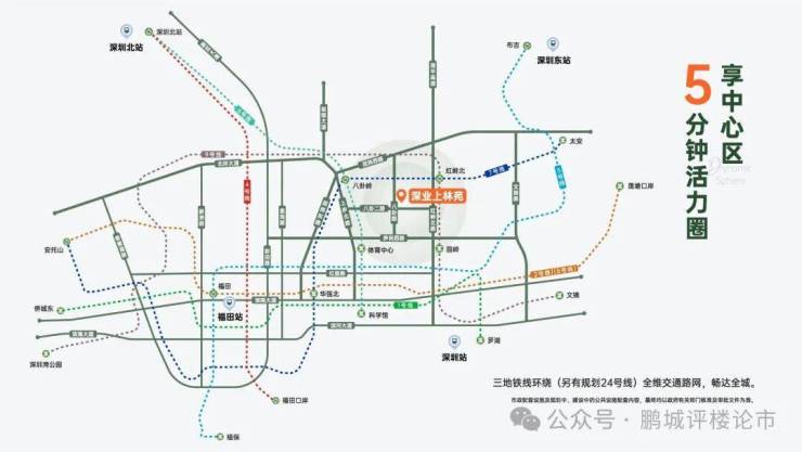 ③【享中心区5分钟活力圈】3地铁线环绕(地铁6、7、9号线,另有规划24号线),畅达全城。5分钟内联通城市主干道(北环大道、清平高速、坂银快速通道、深南大道、滨河大道),交通路网四通八达。20分钟内抵达城市枢纽(福田高铁站、深圳北站、深圳站、福田口岸、皇岗口岸),出行方便。(市政配套设施及规划中、建设中的公共设施配套内容,最终均以政府有关部门核准及审批文件为准)