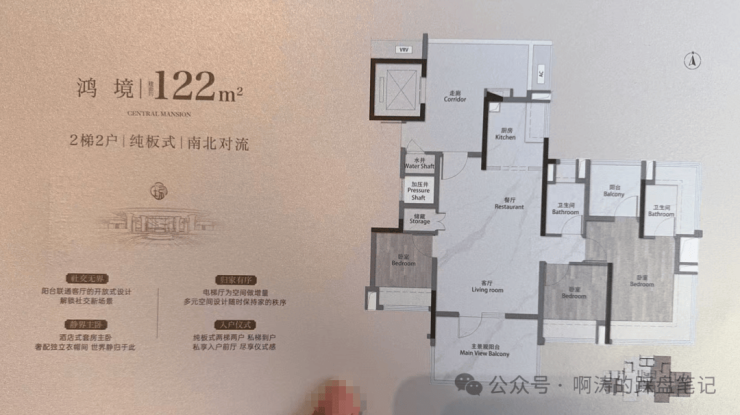 122㎡四房,赠送16平的私家电梯厅,单价预计在3.6-3.9万/平,总价440万起,西边户看小区园林会比东边户要贵。
