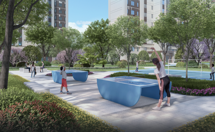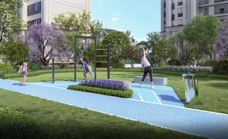 阳光草坪、运动场地、休闲花园等健康生活场景