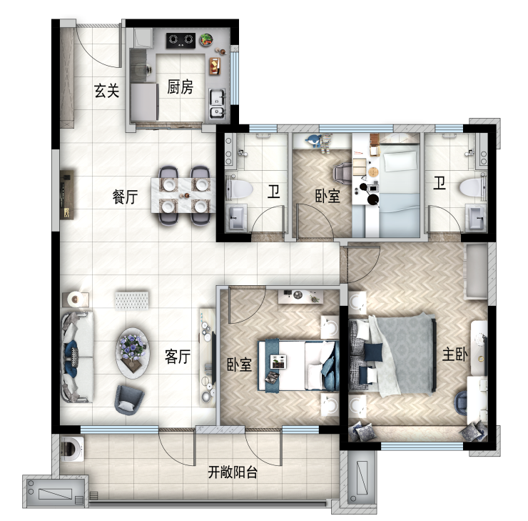 建面约143㎡-三室两厅两卫