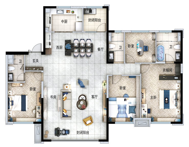 建面约220㎡-四室两厅三卫